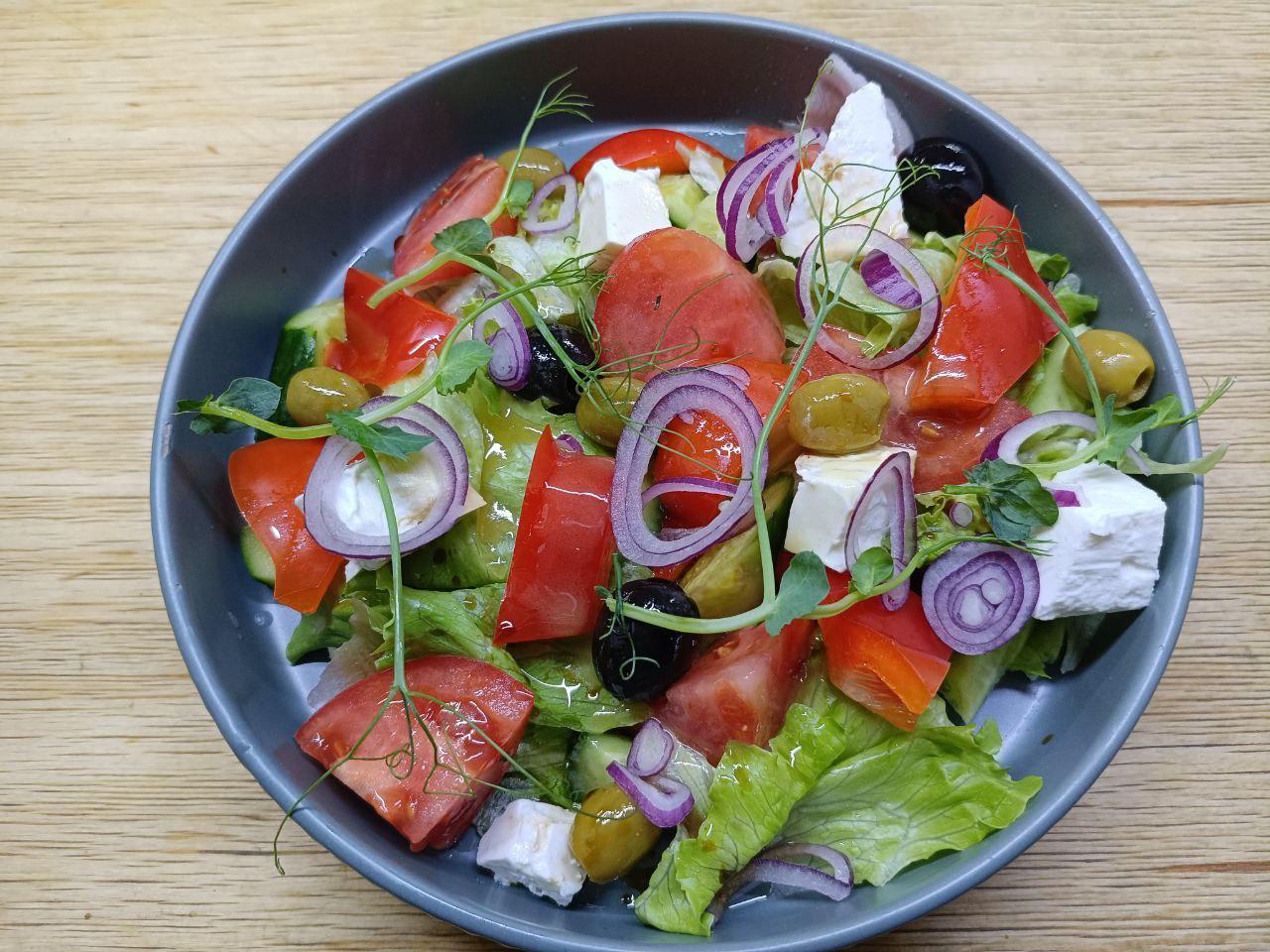 Аккуратно нарезанные соломкой свежие овощи: хрустящая морковь, сочный огурец, сладкий перец, сельдерей, пряный редис и аккуратно разложенные по ячейкам менажницы. Подается с домашним соусом «Блю-чиз».
